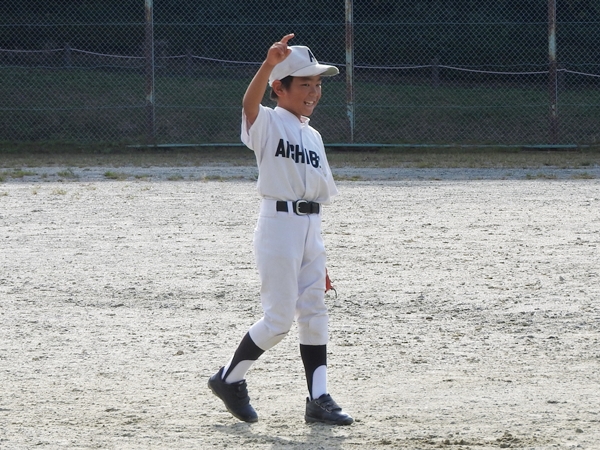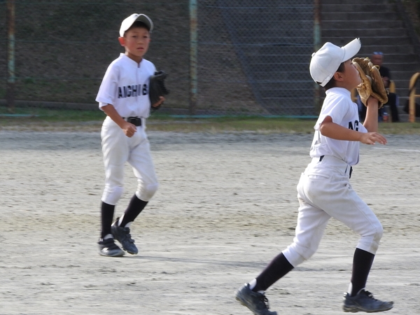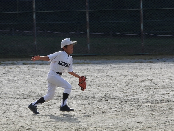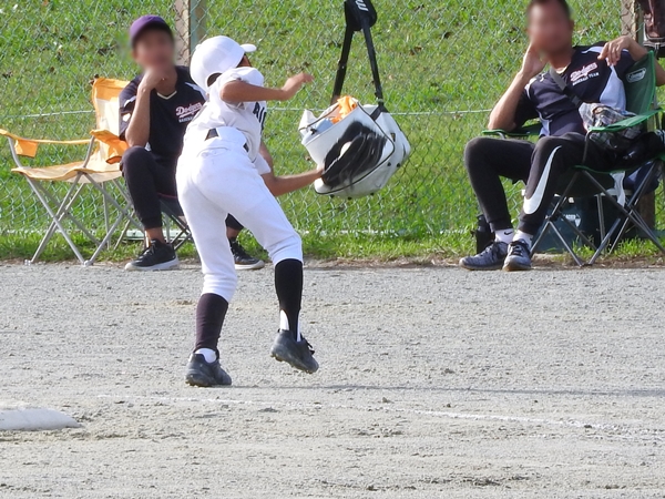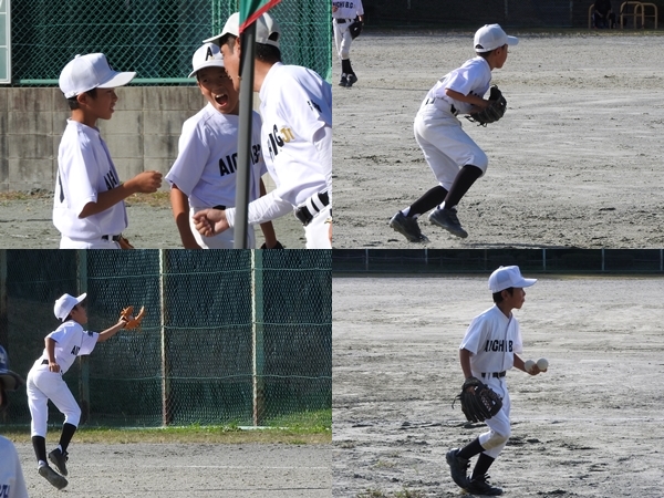 しんた、4回表にレフトフライをキャッチ!