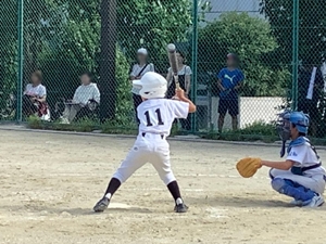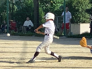 4番しゅんのセンター前ヒットでみおん帰還で1点先制!