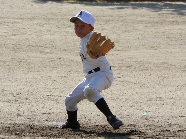 捕手あらたのリズムのいい返球もあり、しゅん、7奪三振でその後の追加点を許さず!
