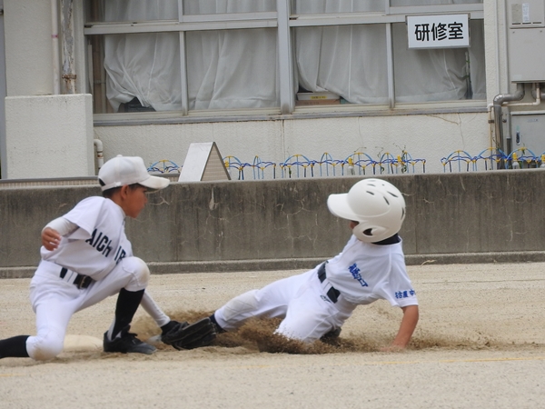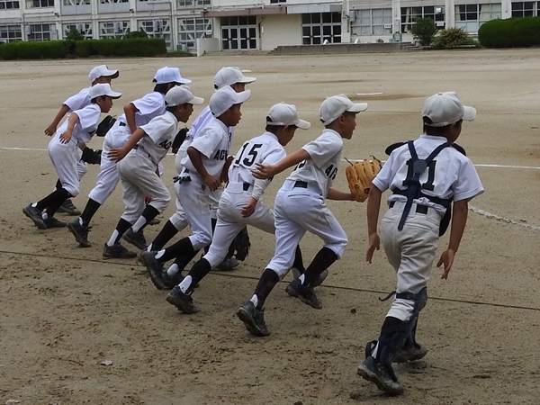蝉の声が聞こえ始めた雨上がりの蒸し暑い中、小川教育リーグ第3戦!