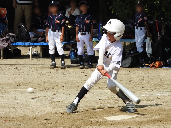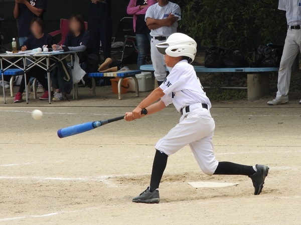 バッター5番のけいすけがレフト前タイムリーツーベースヒット!