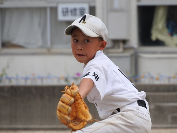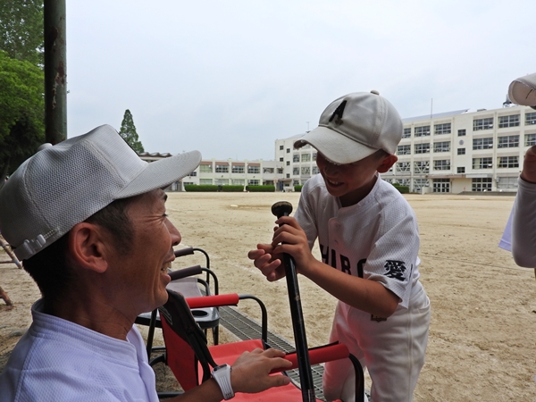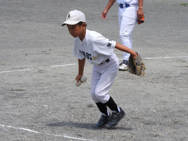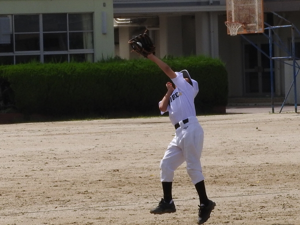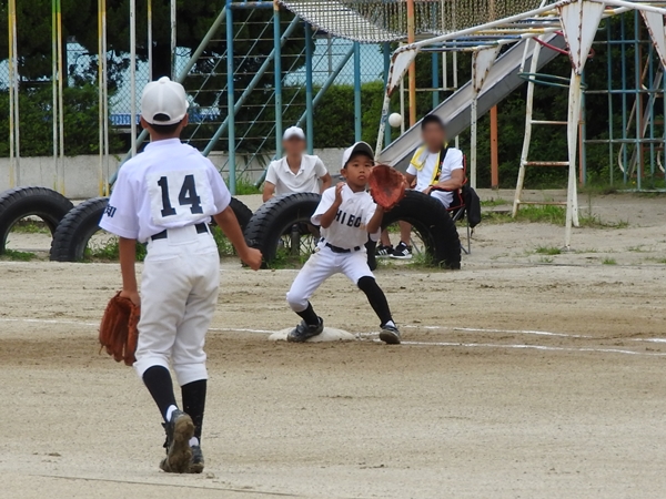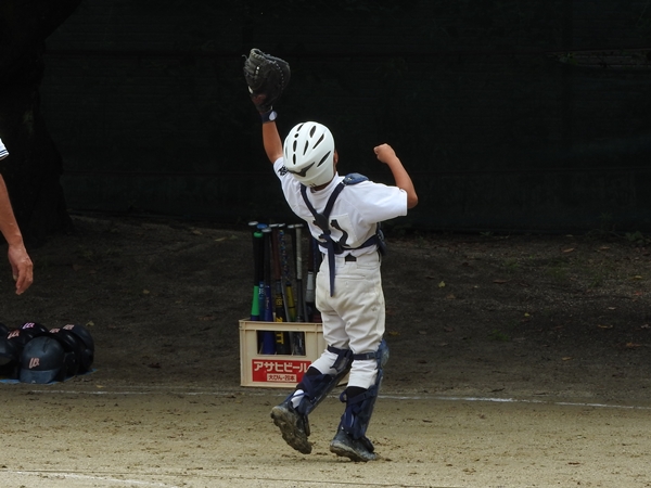 入団したばかりのゆうじろうも見事フライをキャッチ!