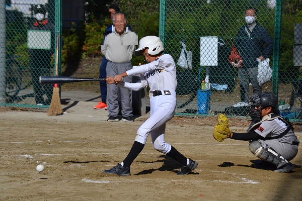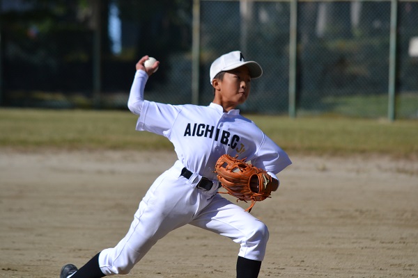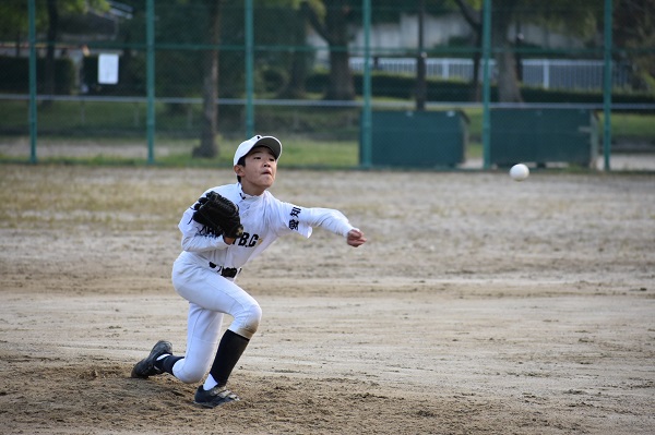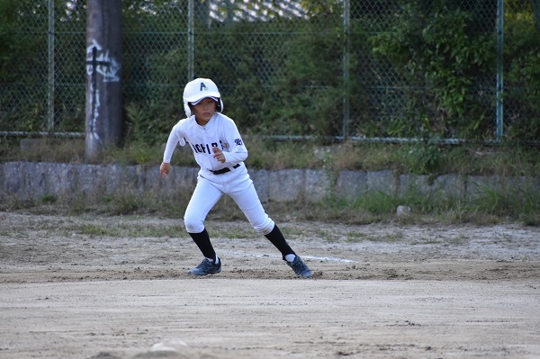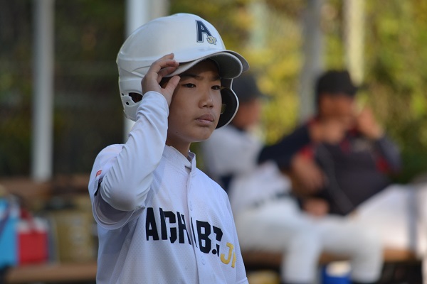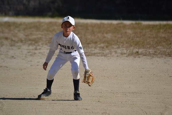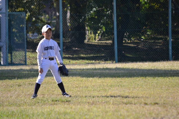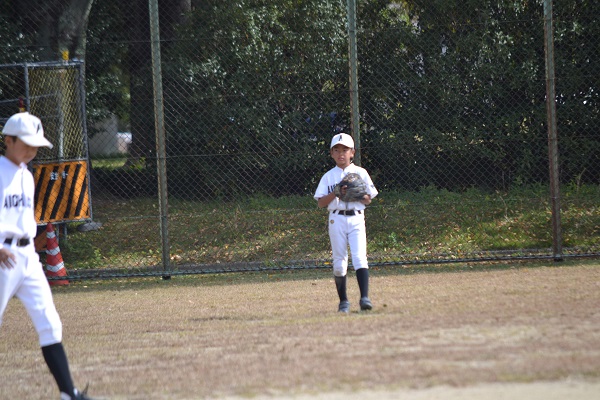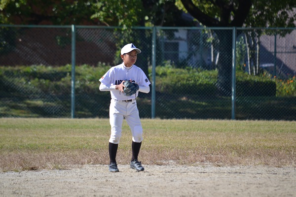 3塁戦への強い打球に飛びつきアウトにしたあらた!